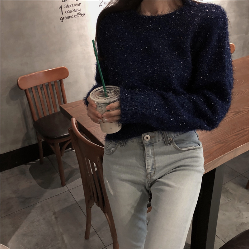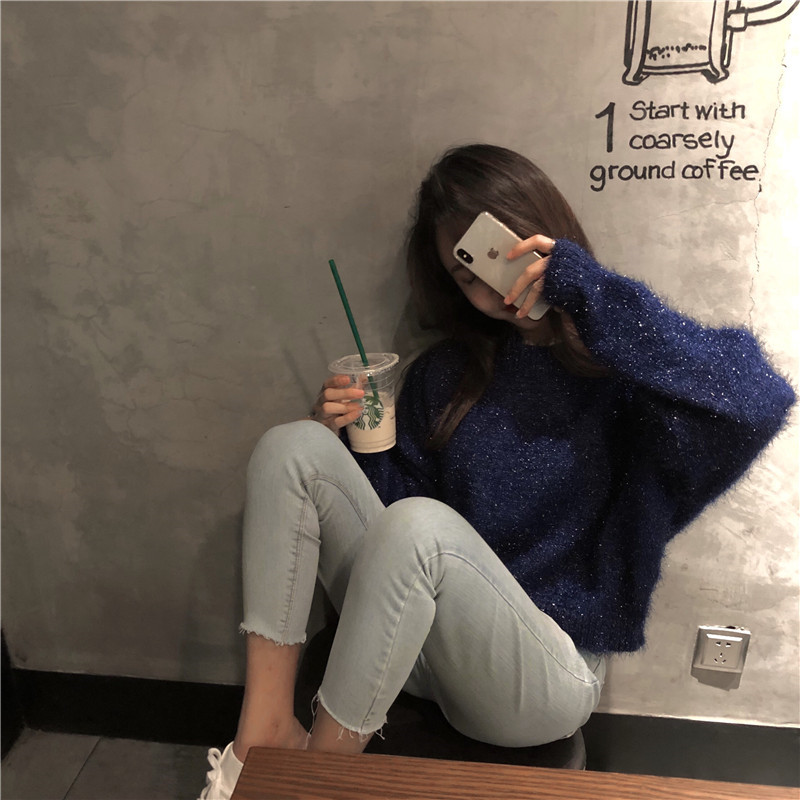 毛衣女2018新款慵懶風閃閃套頭寬松上衣chic早秋針織衫長袖百搭潮
