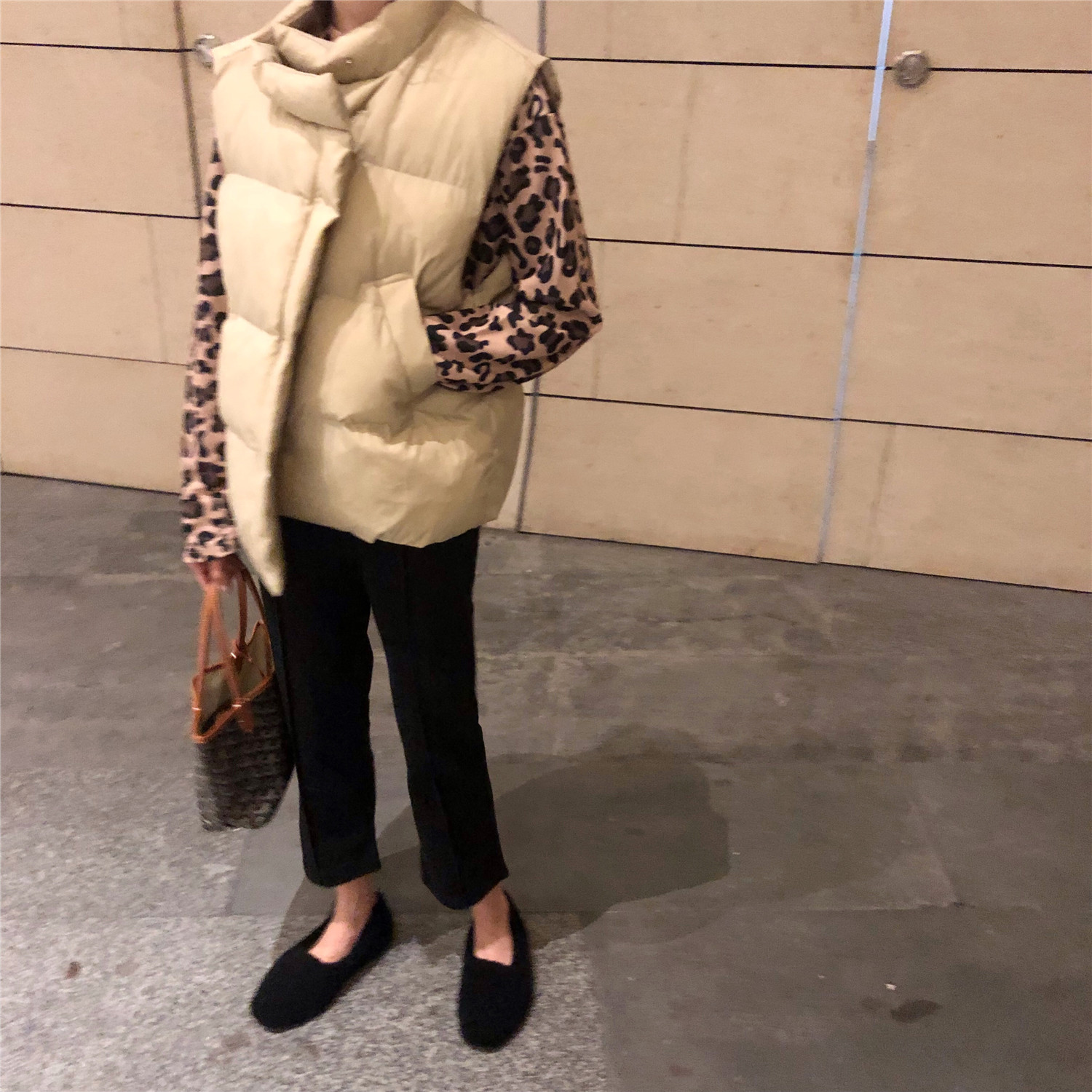 / 韓版新款百搭馬甲加厚背心面包棉衣豹紋內搭呢子拼接褲子時尚套裝