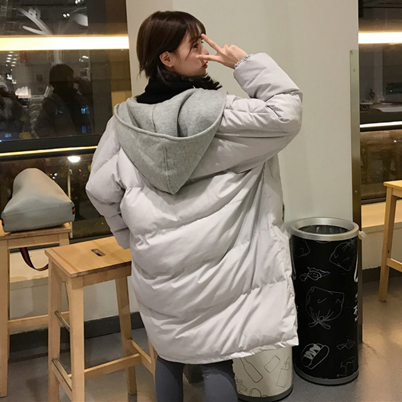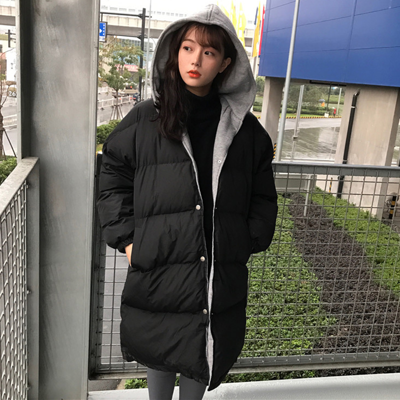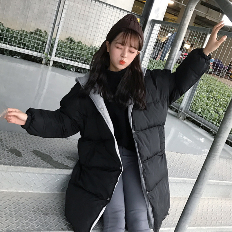 外套冬女裝2018新款加厚保暖棉服韓版寬松中長款排扣純色連帽棉衣