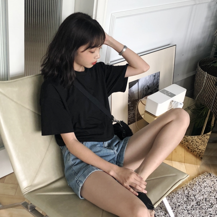 / 夏裝女裝新款韓版純色露背短款T恤寬松個性拉鏈短袖顯瘦上衣學生