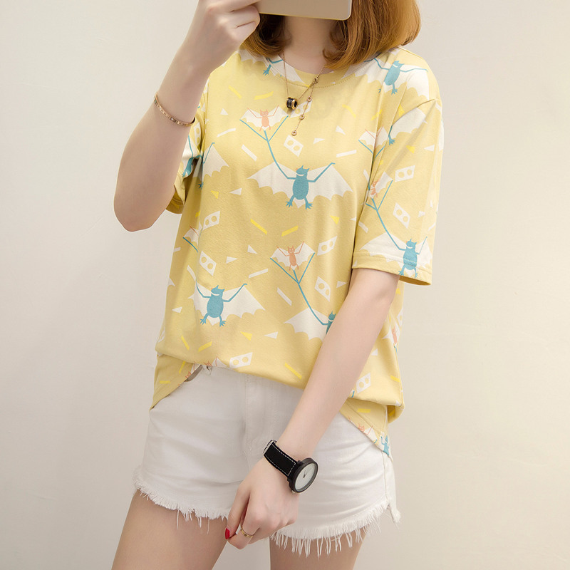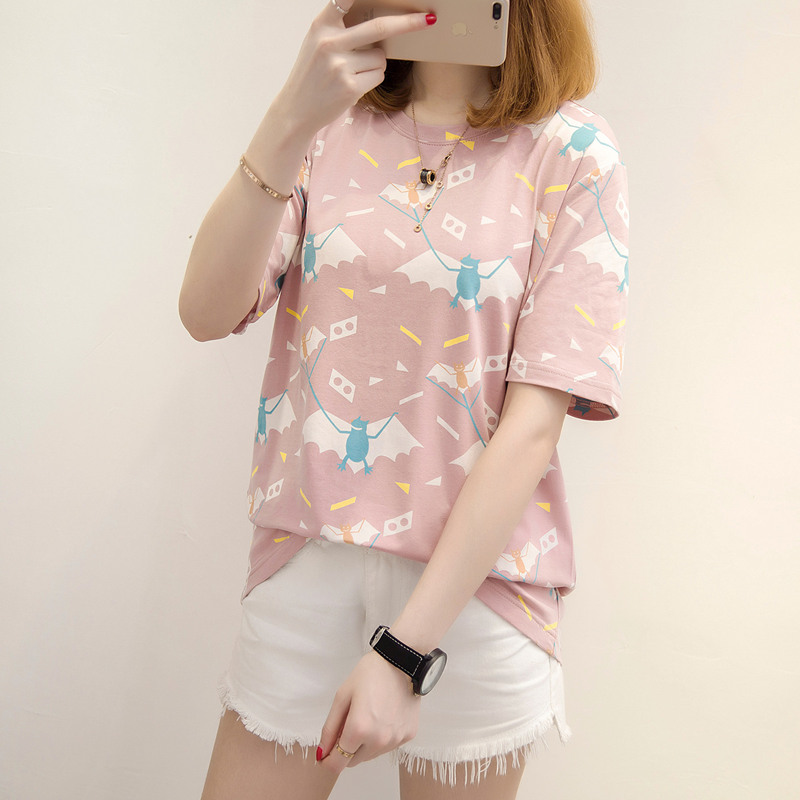 / 寬松t恤上衣衣服女夏卡通休閑百搭打底韓版體恤衫短袖女新款