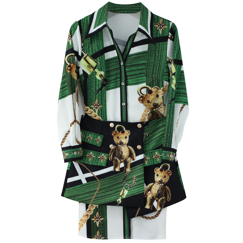 網紅氣質套裝2018秋季女新款長袖印花襯衫高腰修身半身裙兩件套潮