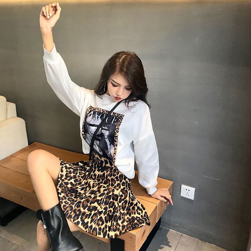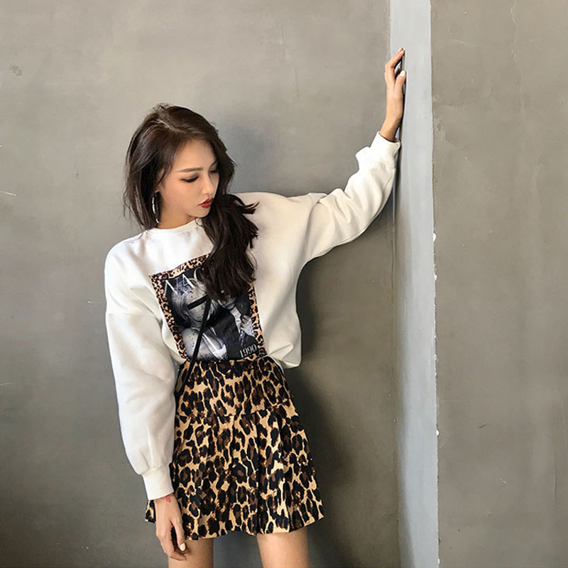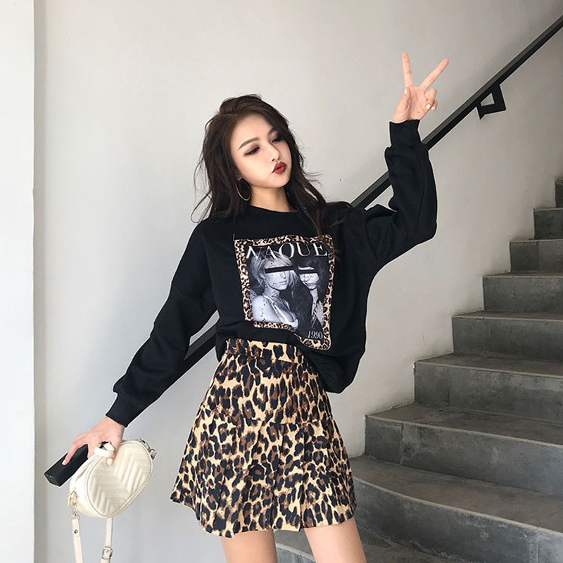 2018秋冬新款韓版時尚套裝長袖寬松印花衛衣高腰半身短裙兩件套女