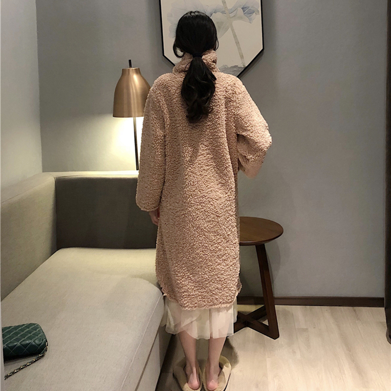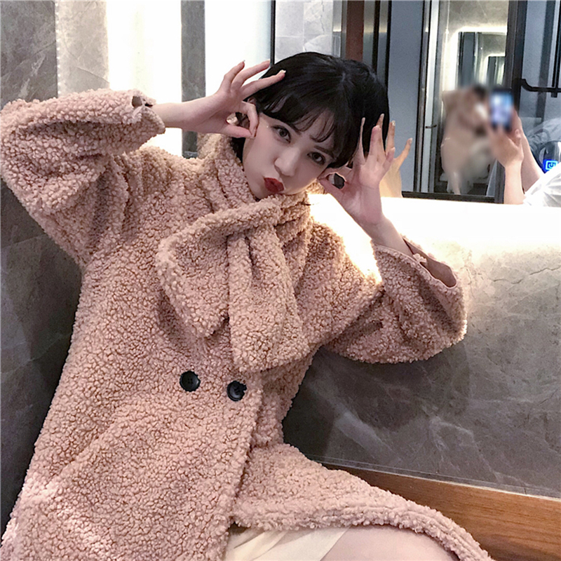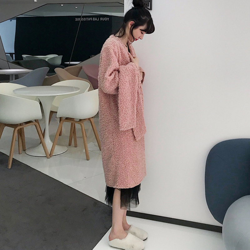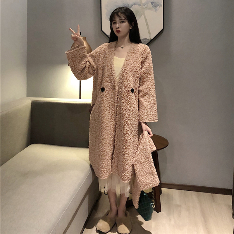 2018新款流行毛絨外套秋冬裝韓版中長款寬松V領加厚棉衣女配圍脖