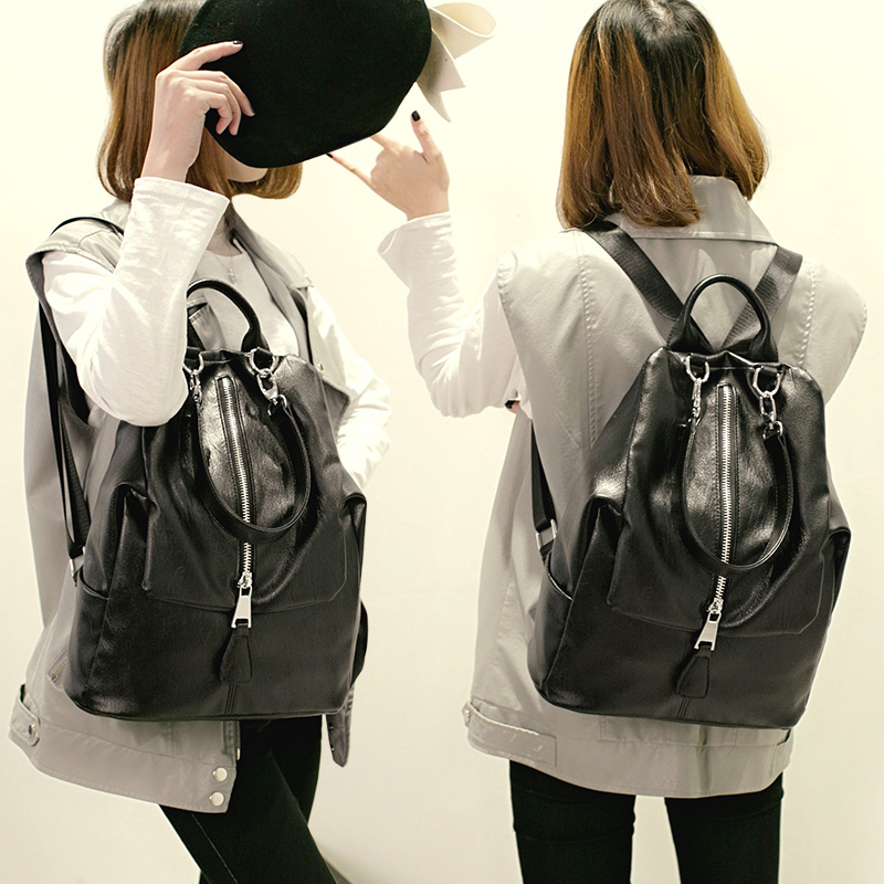 雙肩包女韓版pu時尚百搭軟面休閑旅行大包包新款女士背包女潮