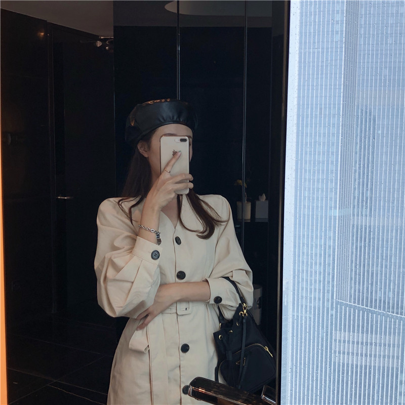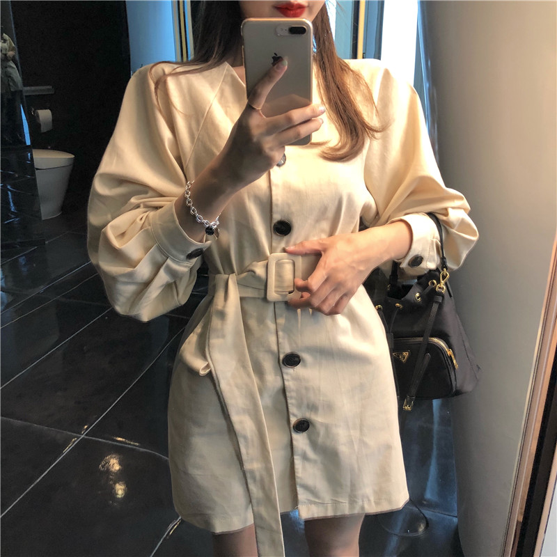 / 小香風2018時尚連衣裙秋季新款單排扣系腰帶收腰百搭氣質風衣裙女