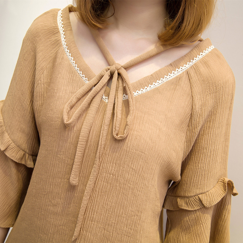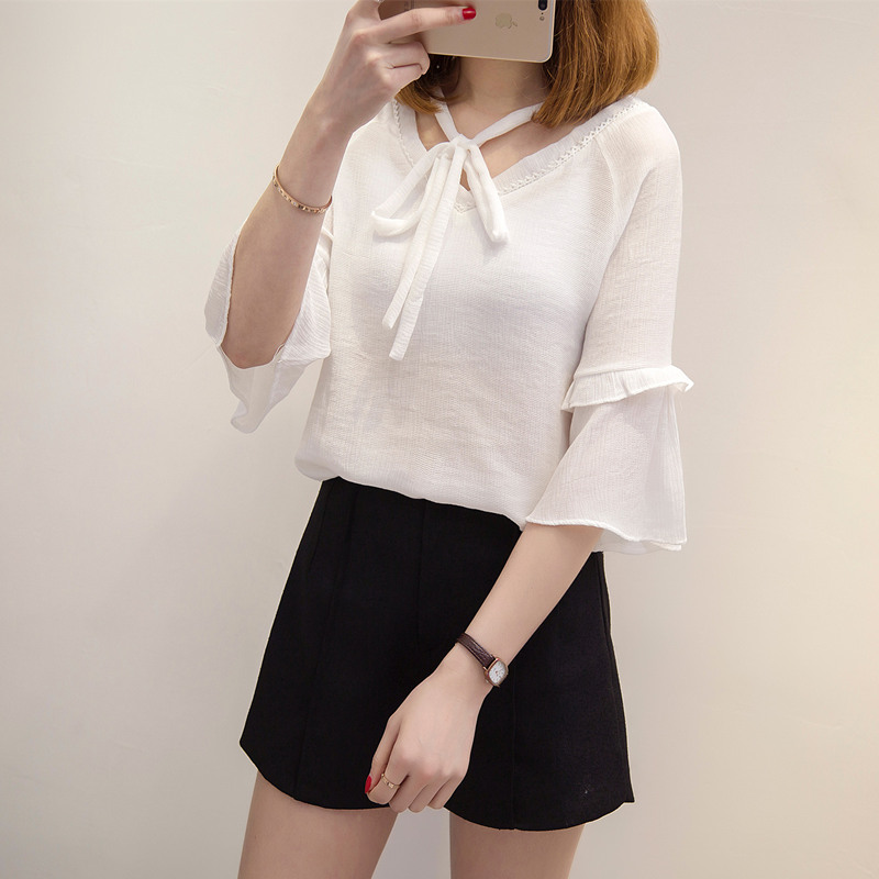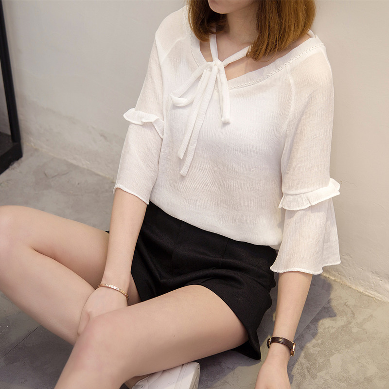 / 短袖上衣女夏新款荷葉袖白色t恤女夏薄款衣服寬松韓版百搭潮