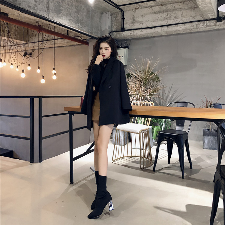 復古港風秋裝女2018新款顯瘦西裝氣質百搭純色兩粒扣秋季小外套潮