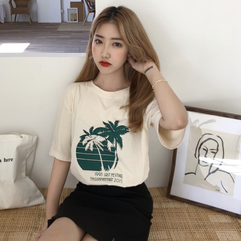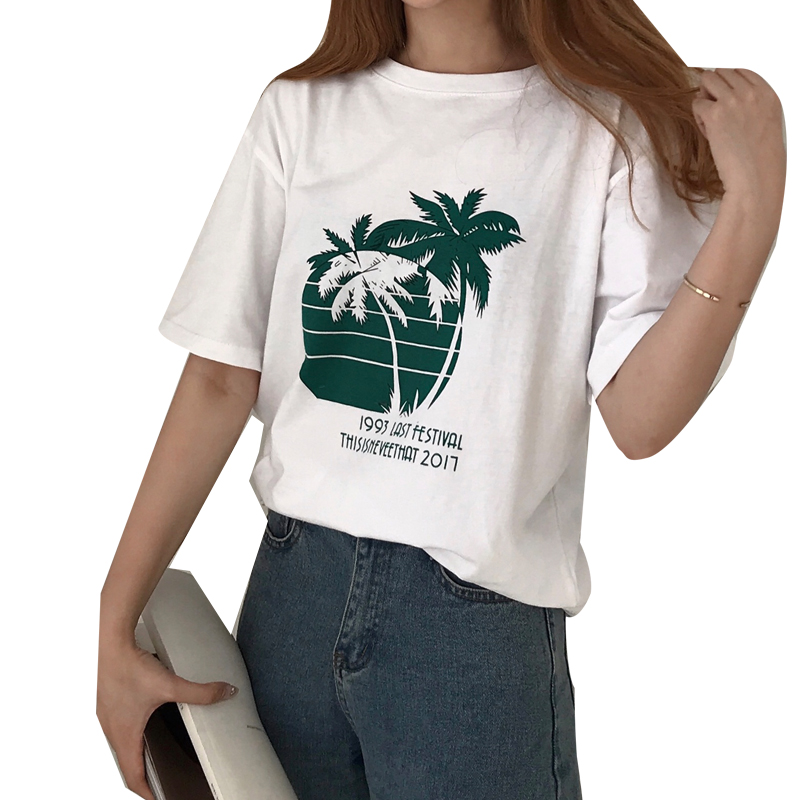 / 春夏女裝新款韓版時尚椰樹字母印花休閑上衣學生寬松港風短袖T恤