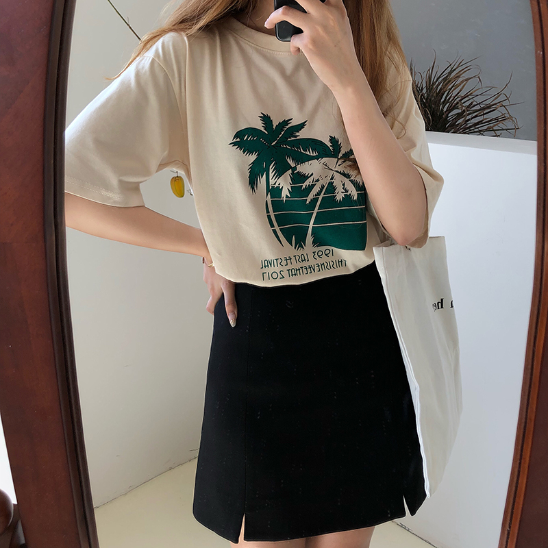 春夏女裝新款韓版時尚椰樹字母印花休閑上衣學生寬松港風短袖T恤