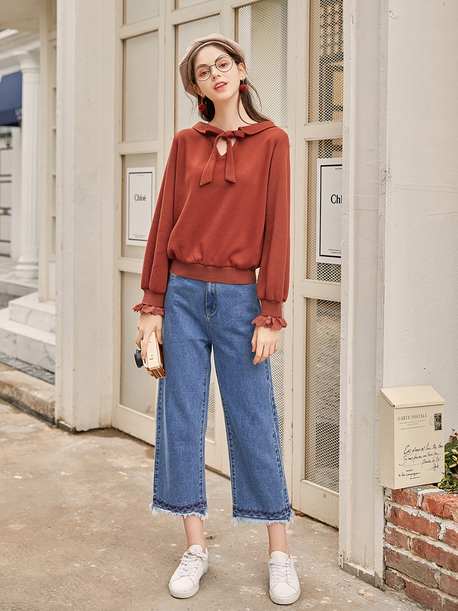 MG小象心機套頭衛衣女長袖寬松外穿秋冬2018新款港風復古chic上衣