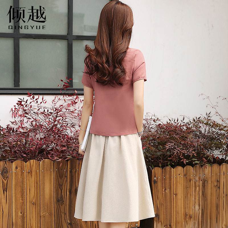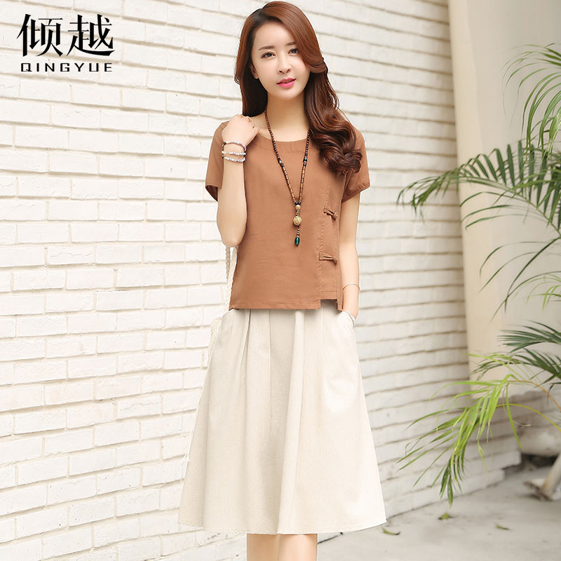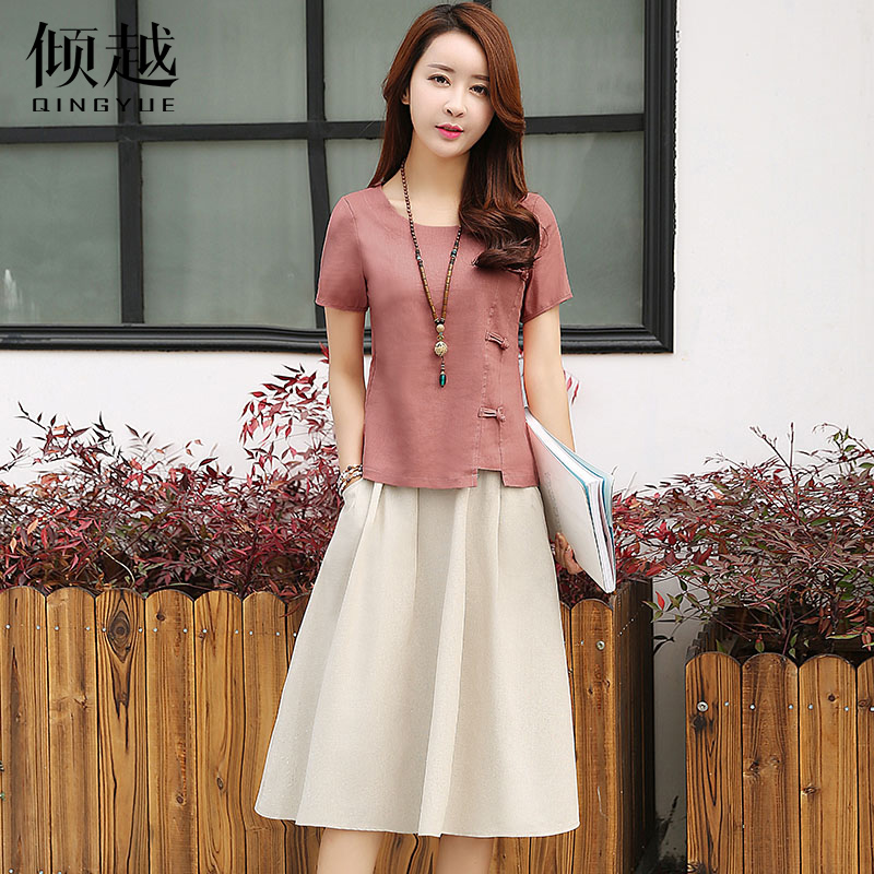 / 傾越2017夏裝韓版新款套裝女顯瘦時尚套裝裙子中長款氣質兩件套潮