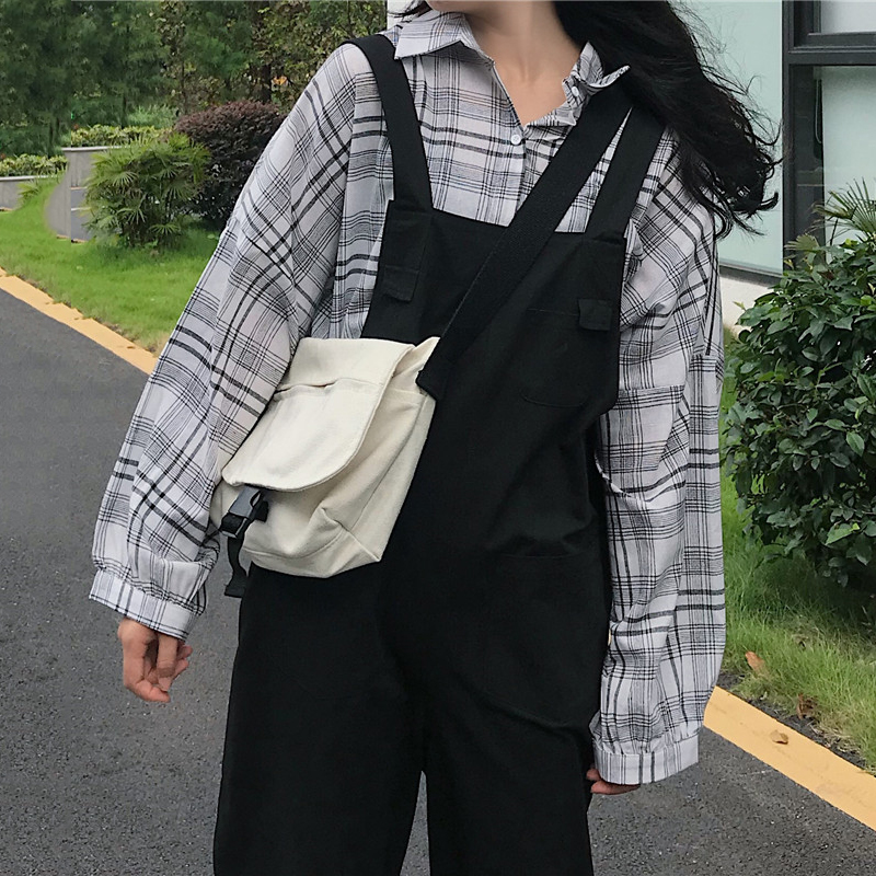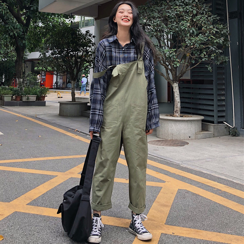秋裝女2018新款原宿風連體工裝背帶褲學生韓版女裝寬松黑色闊腿褲