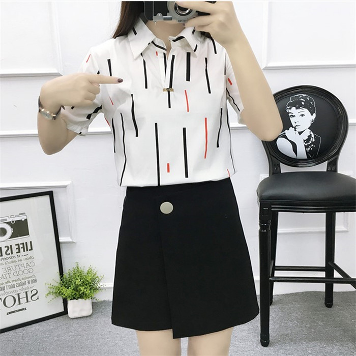 / 白色襯衫女2017夏裝休閑寬松百搭大碼上衣中長款職業短袖雪紡襯衣