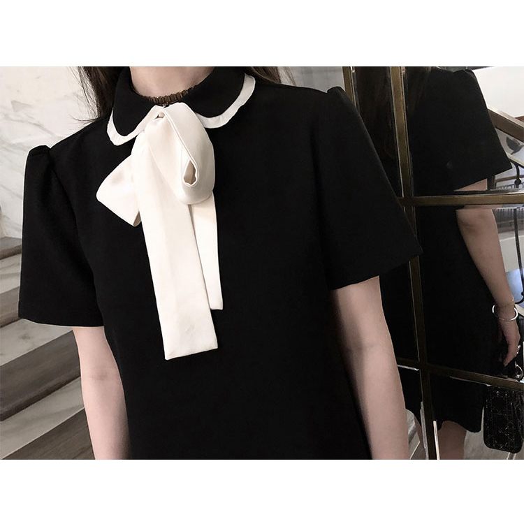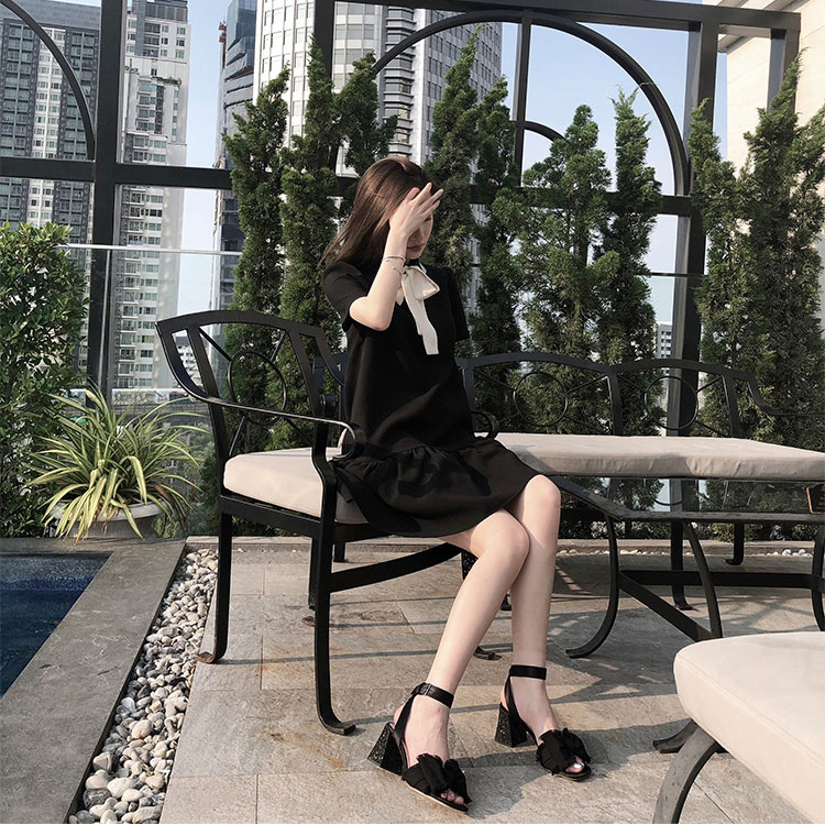 / 夏季女裝時尚冷淡風黑色褶皺奶油裙子少女心超仙女顯瘦直筒連衣裙