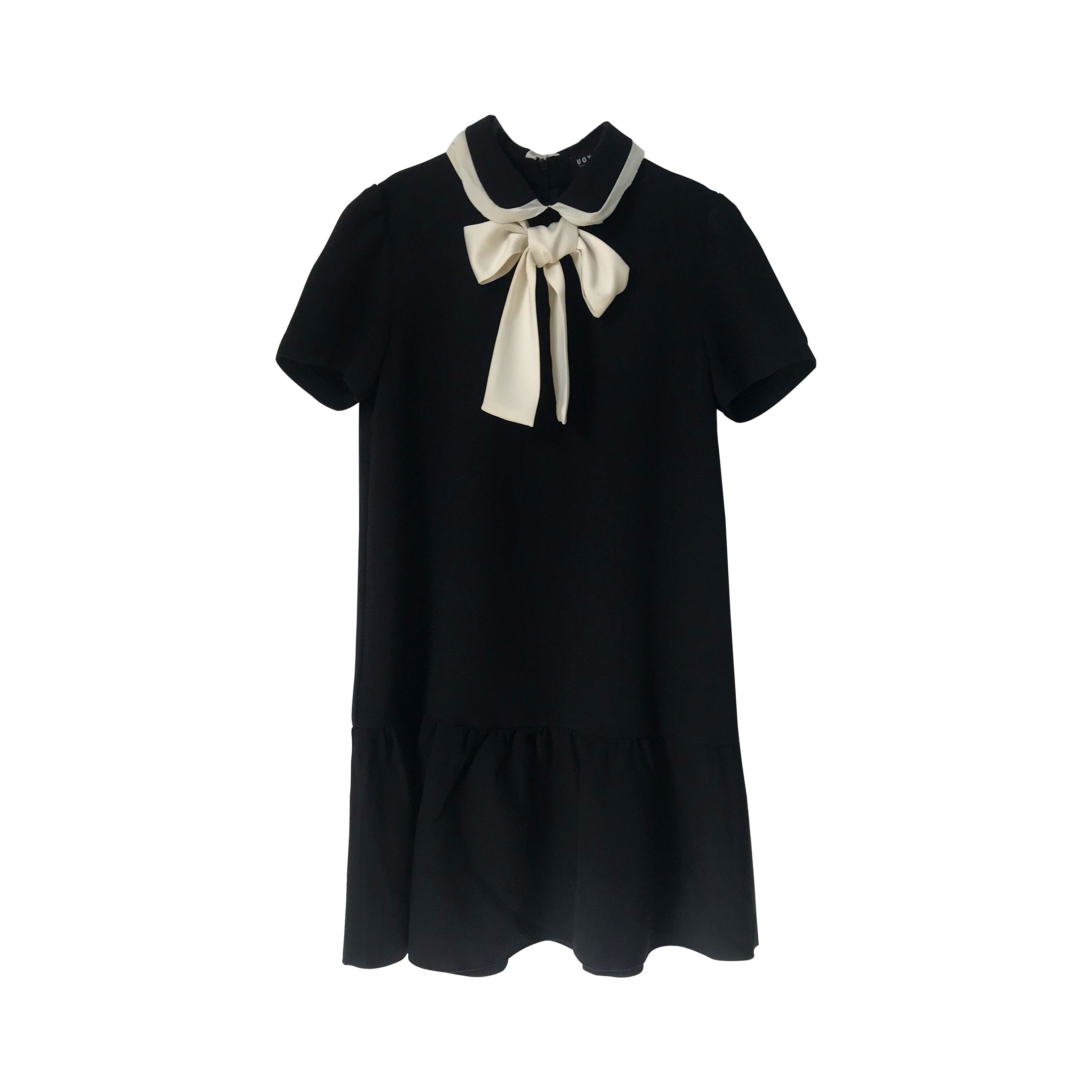 夏季女裝時尚冷淡風黑色褶皺奶油裙子少女心超仙女顯瘦直筒連衣裙