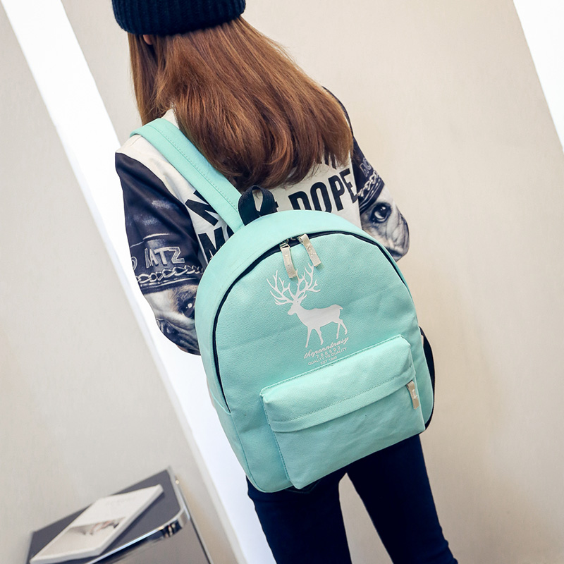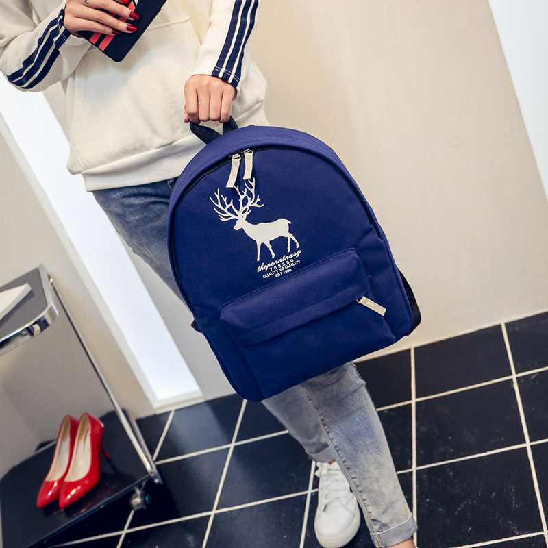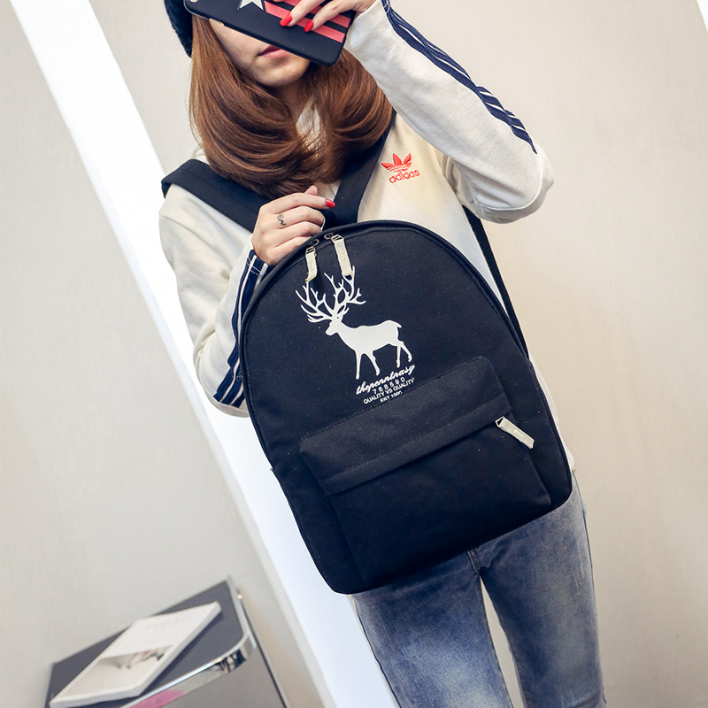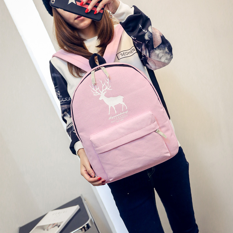 / 雙肩包女皮韓版背包中學生書包學院風民族風小鹿印花校園簡約百搭