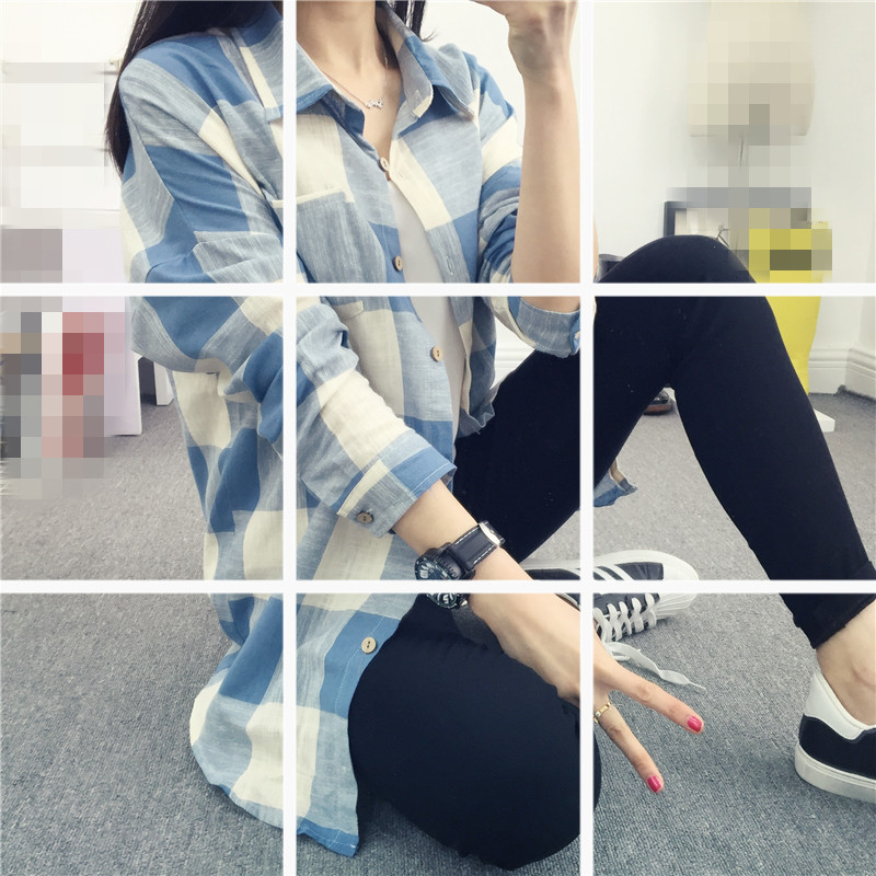/ 春秋裝格子襯衫女長袖棉麻上衣寬松女中長款休閑百搭韓范襯衣外穿
