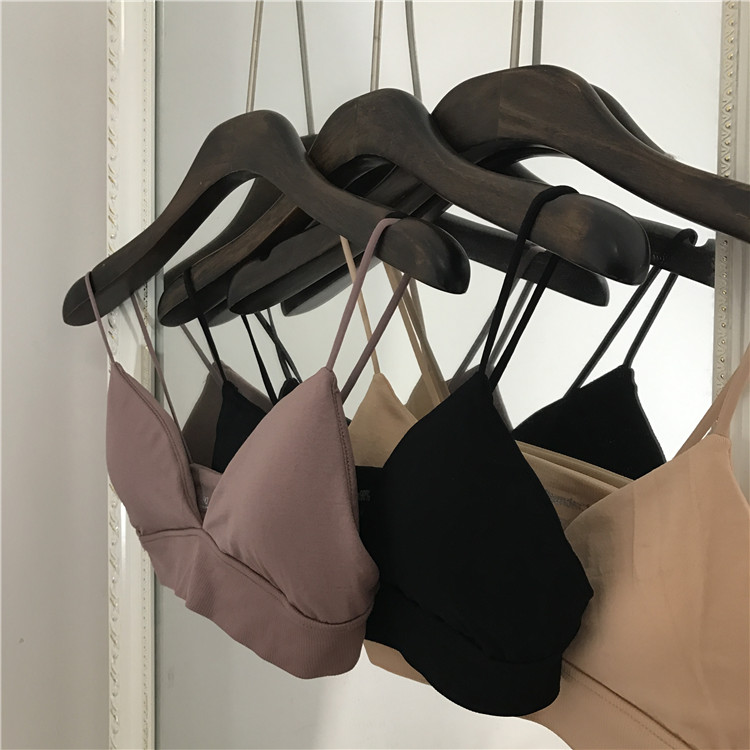/ 夏季2018新款簡約舒適無鋼圈三角杯細帶薄款文胸含襯墊睡眠內衣女