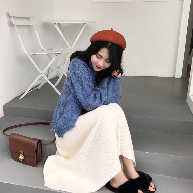 女秋裝2018新款裙子韓版紋理半裙子高腰顯瘦百搭女打底針織半身裙