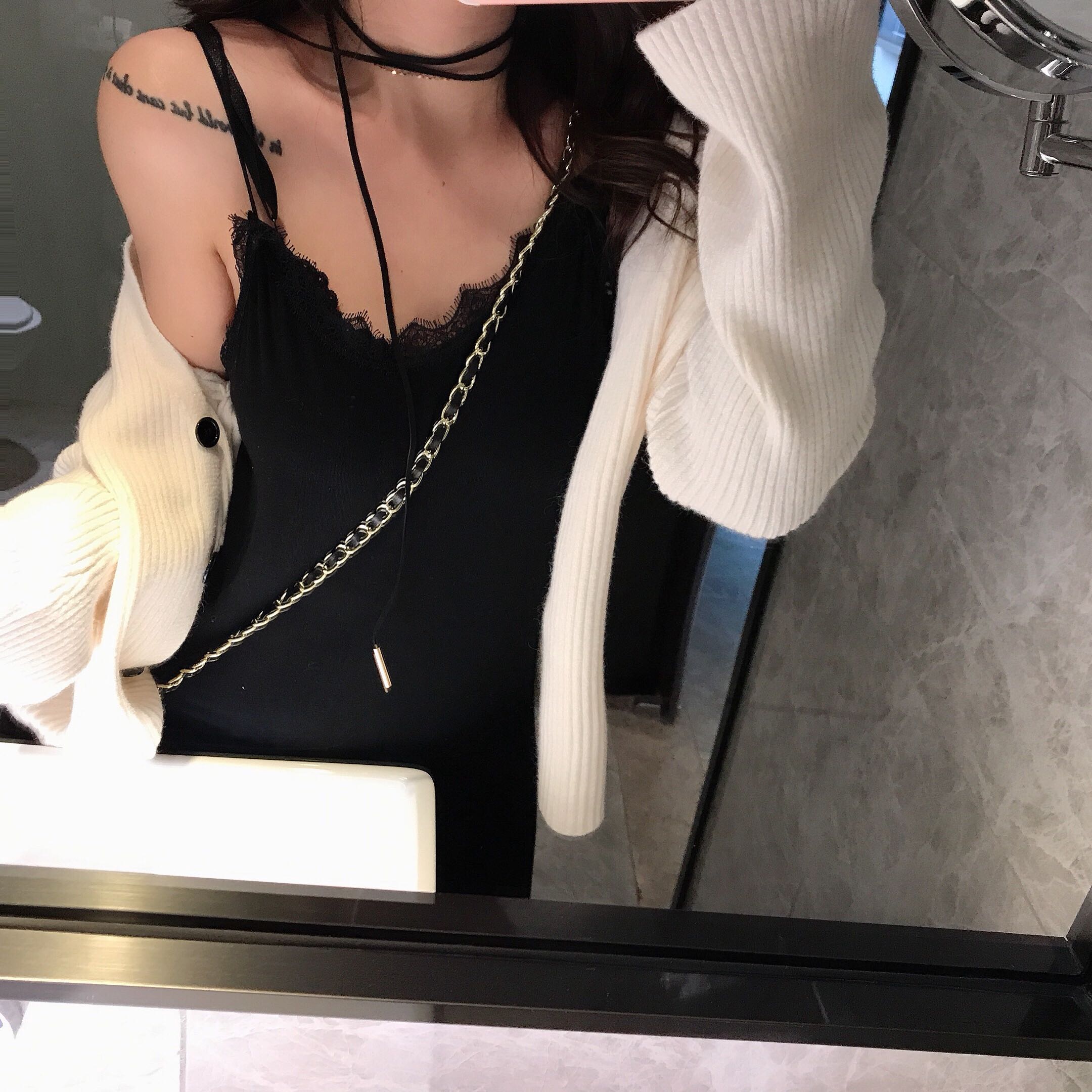 chic早秋上衣慵懶寬松顯瘦純色長袖V領針織衫開衫外套女韓版新款