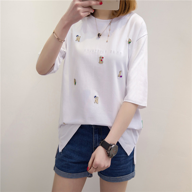 短袖上衣女夏新款女裝寬松白色t恤女半袖韓版體恤女衣服百搭