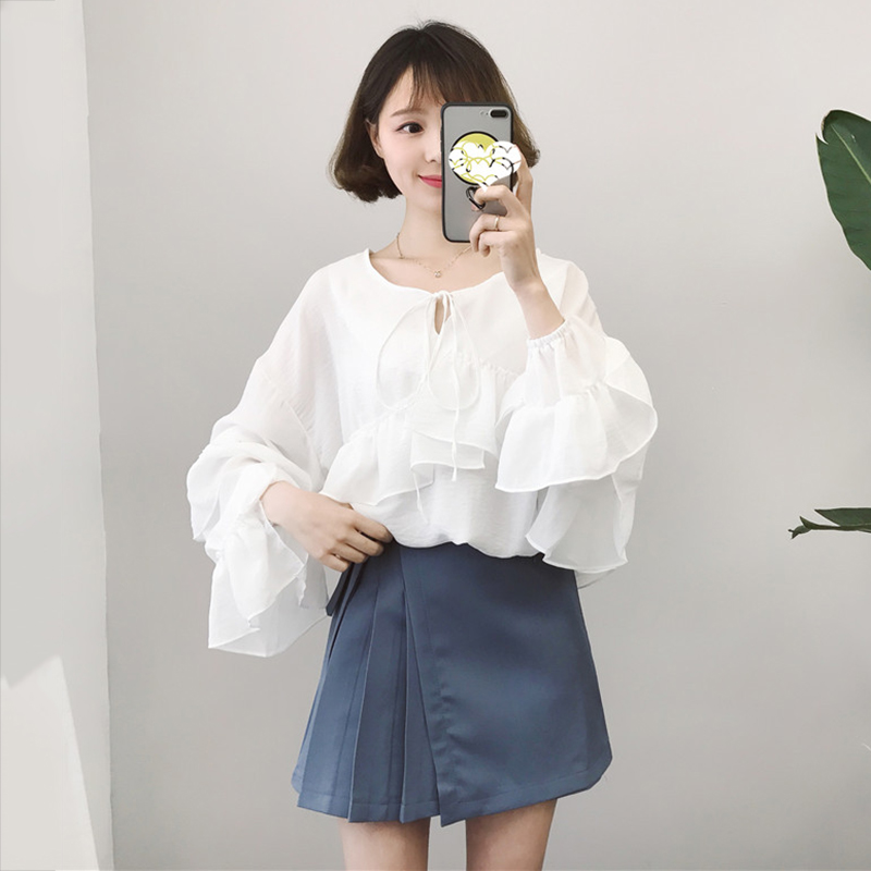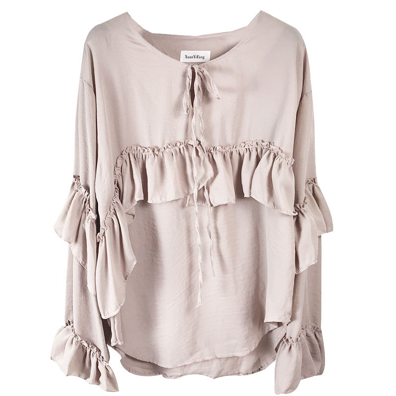 / 秋裝女2018新款韓版氣質荷葉邊長袖雪紡襯衫時尚洋氣寬松系帶上衣
