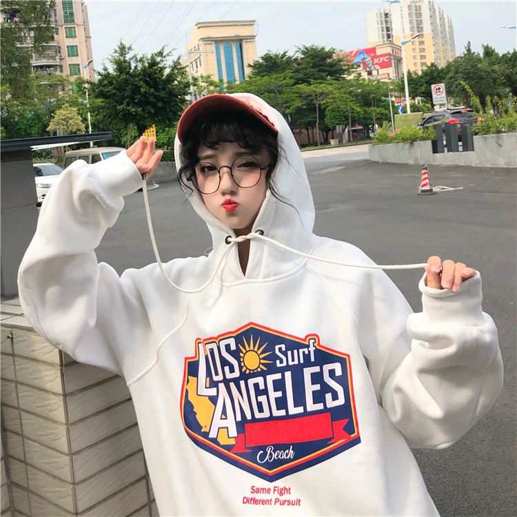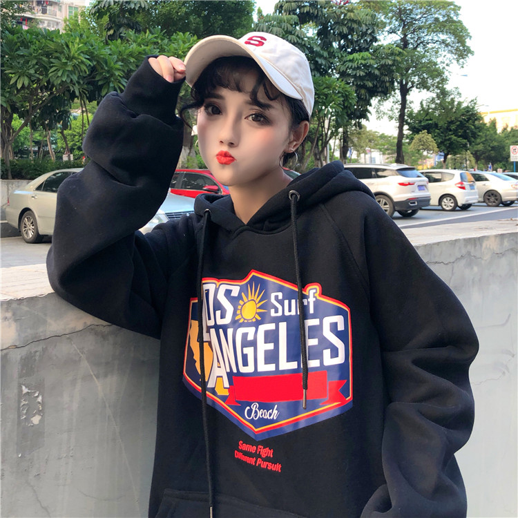 / 秋冬女裝韓版中長款原宿風寬松字母連帽加絨pp home超火衛衣外套