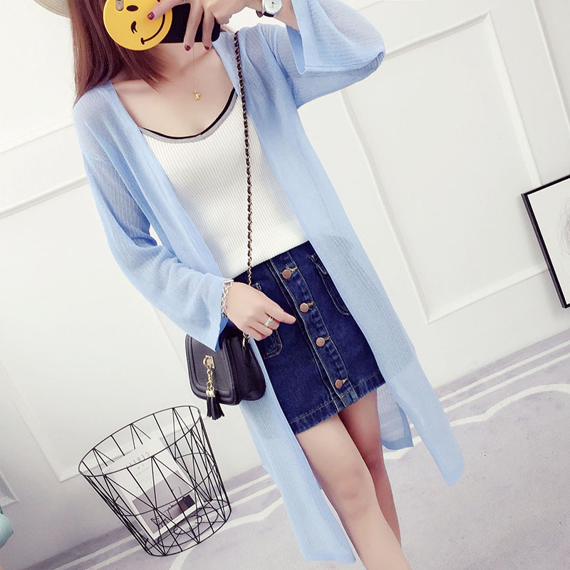 / 夏季新款中長款外套針織衫開衫女超薄款外搭冰絲空調衫防曬衣
