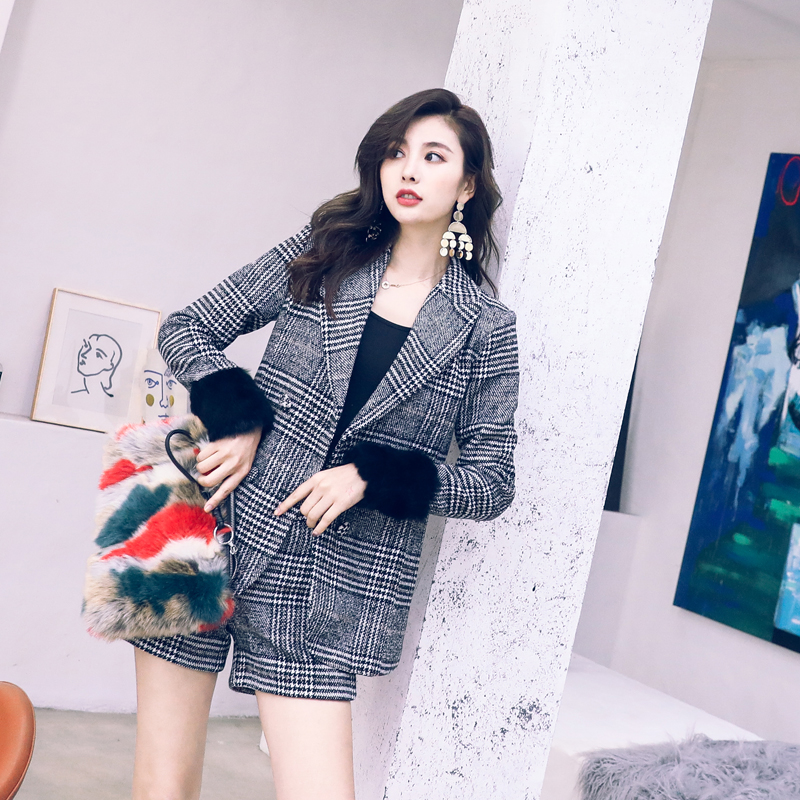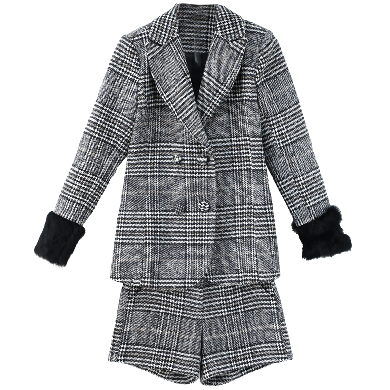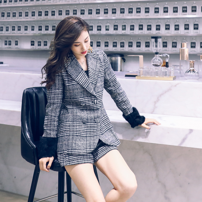 / 名媛氣質2018新款英倫風OL西裝短褲套裝秋格子小西服外套兩件套女
