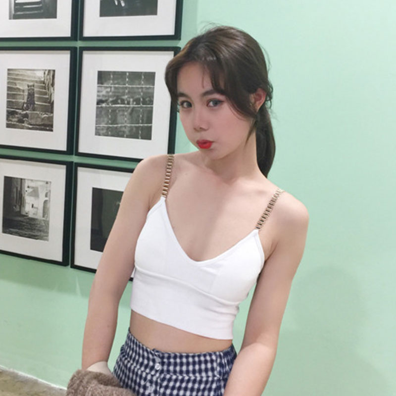 / 春夏新款女裝韓版金屬鏈百搭短款露臍抹胸胸墊學生打底吊帶小背心