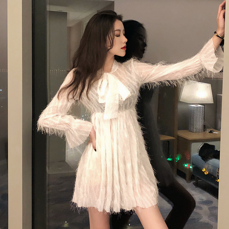 毛衣配裙子兩件套女秋冬裝新款寬松長袖針織衫時尚流蘇長袖連衣裙
