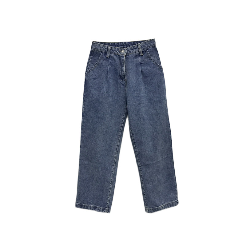 復古韓國百搭chic風高腰顯瘦直筒褲牛仔褲女寬松簡約長褲潮可卷邊