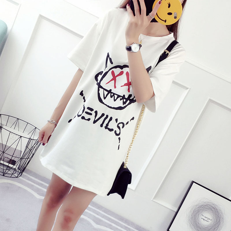 / 夏裝新款韓版百搭學生寬松上衣中長款打底衫短袖t恤女半截袖