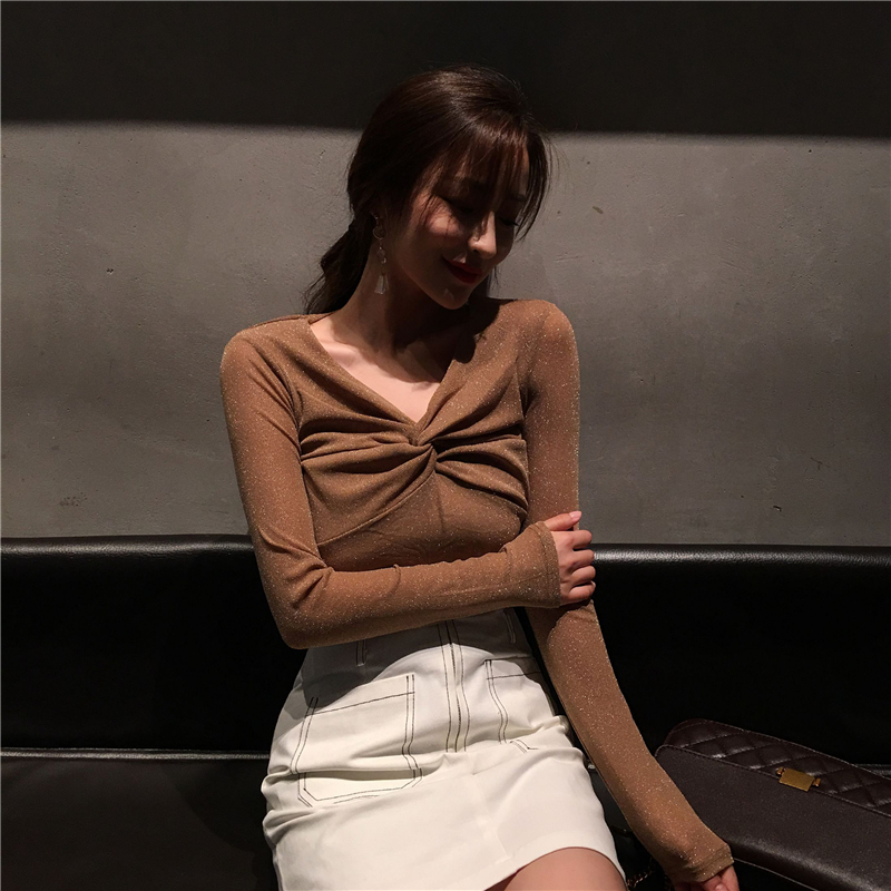 小衫女秋裝長袖套頭v領2018新款秋季裝時尚百搭顯瘦上衣打底衫潮