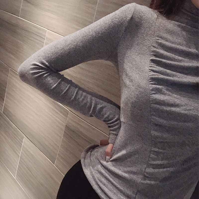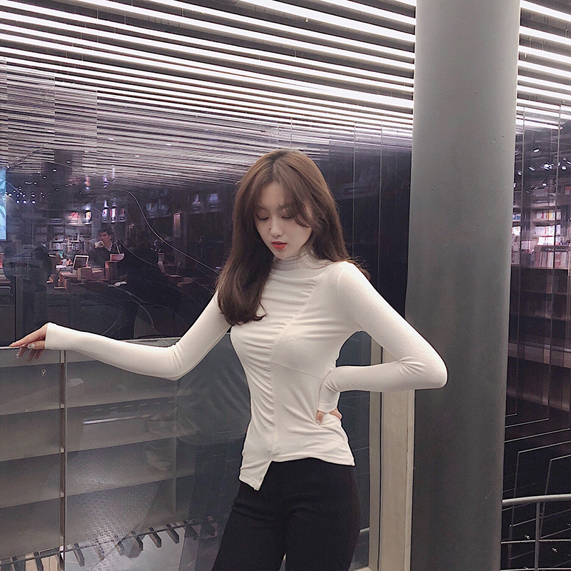 / 2018秋冬新款韓版修身顯瘦設計感顯瘦高領T恤女不規則打底上衣潮