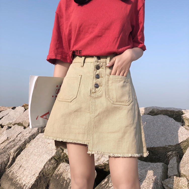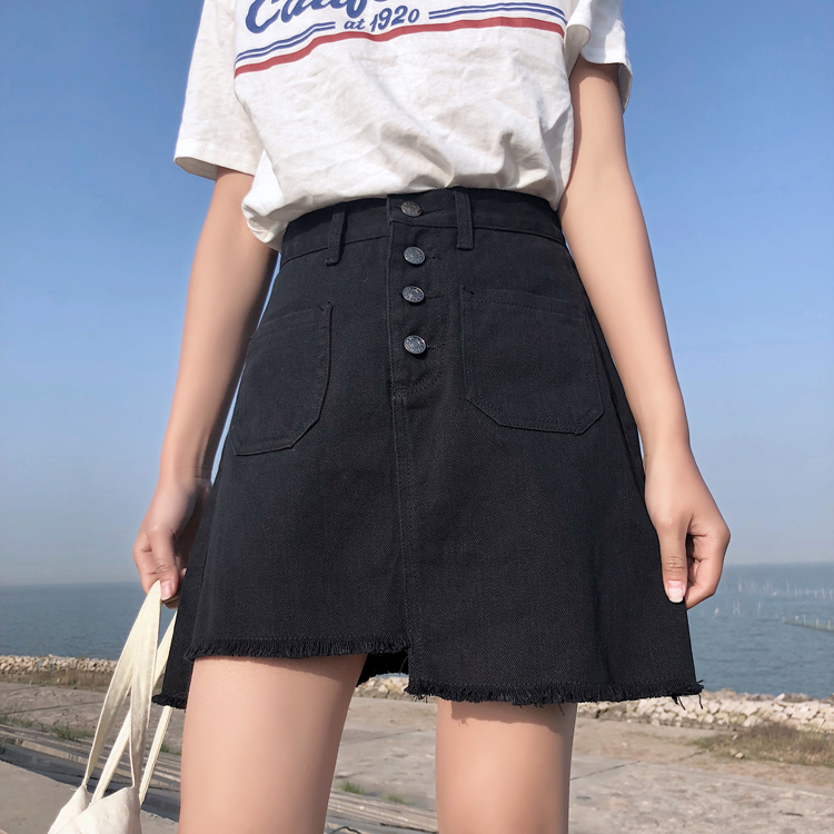 / 夏裝女裝2018新款韓版高腰不規則牛仔裙半身裙顯瘦A字裙短裙學生
