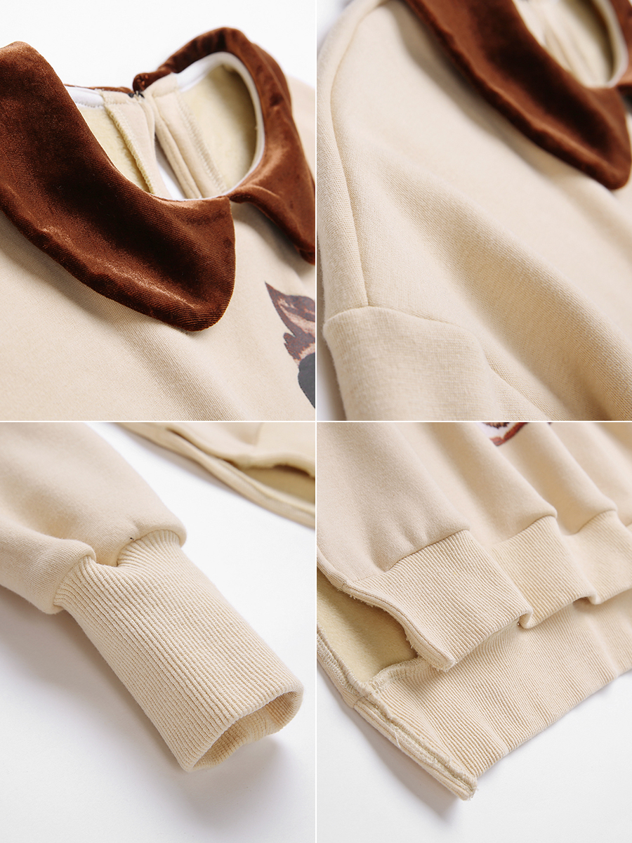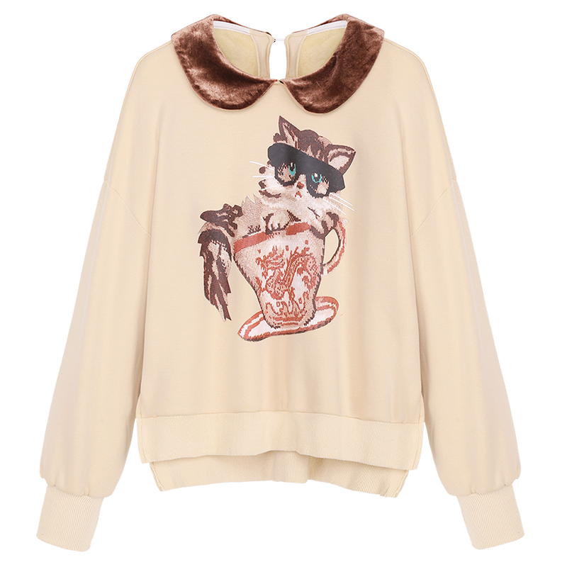 MG小象娃娃領加絨衛衣女2018新款長袖貓咪印花復古寬松套頭上衣潮