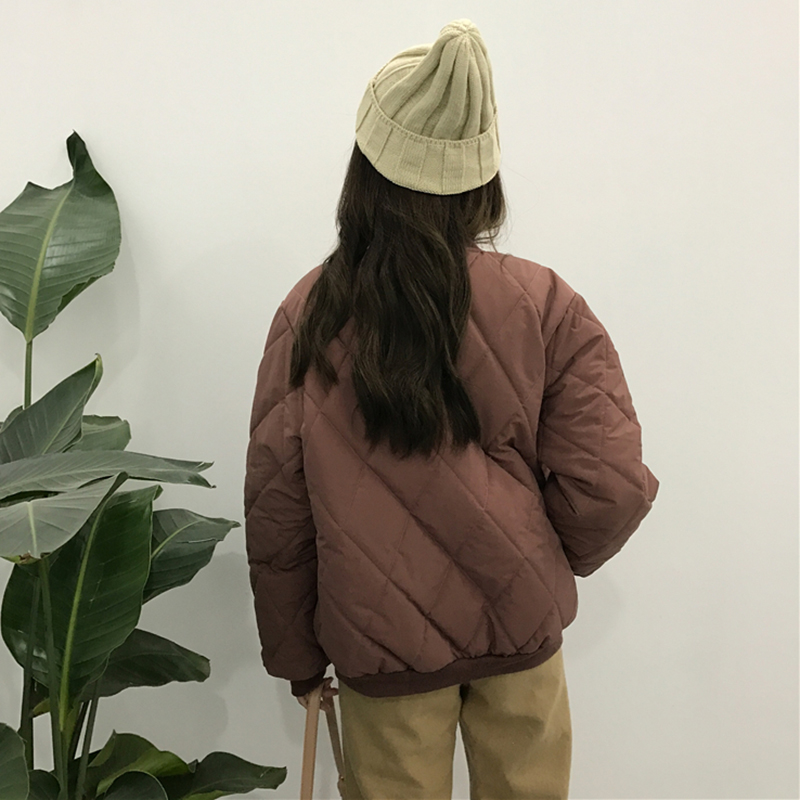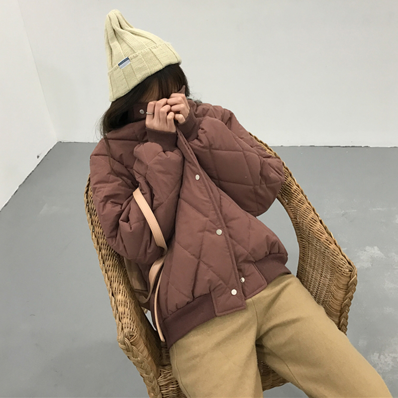 秋冬女裝2018新款學院風菱格時尚棉襖外套寬松長袖面包服休閑上衣