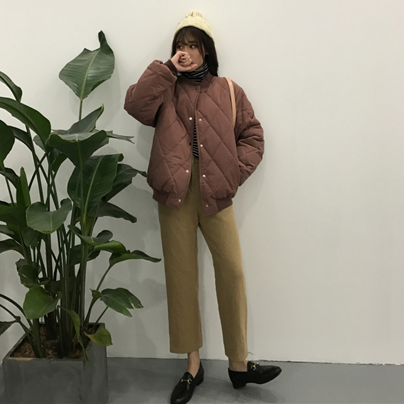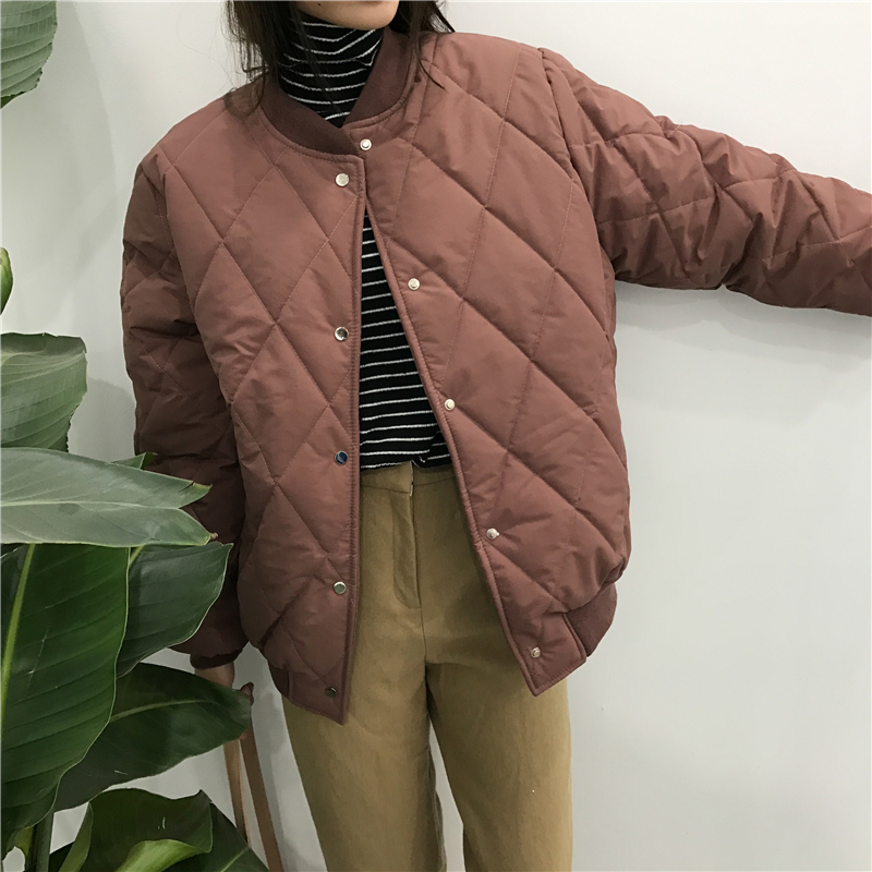 / 秋冬女裝2018新款學院風菱格時尚棉襖外套寬松長袖面包服休閑上衣