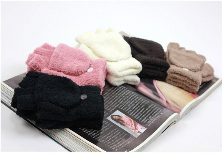 秋冬韓版軟綿綿露半指翻蓋兩用學生騎車全指保暖手套男女潮