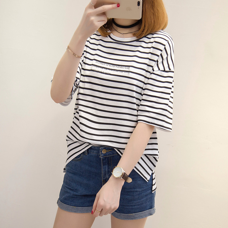 / 條紋t恤女韓版學生小清新上衣女夏bf風體恤衫短袖夏裝新款女