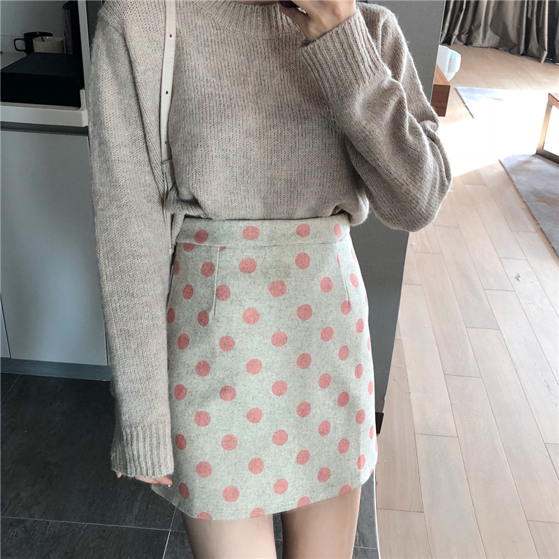 / 裙子女秋冬新款韓版chic高腰顯瘦氣質包臀復古百搭波點毛呢短裙潮