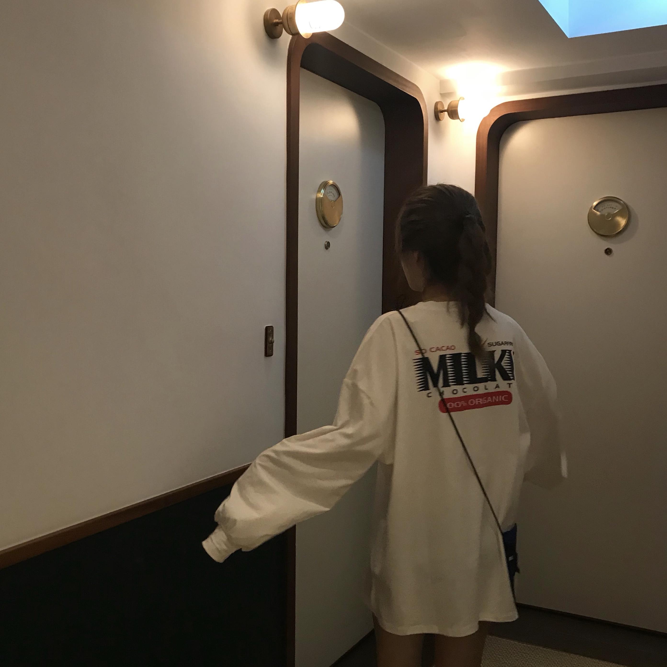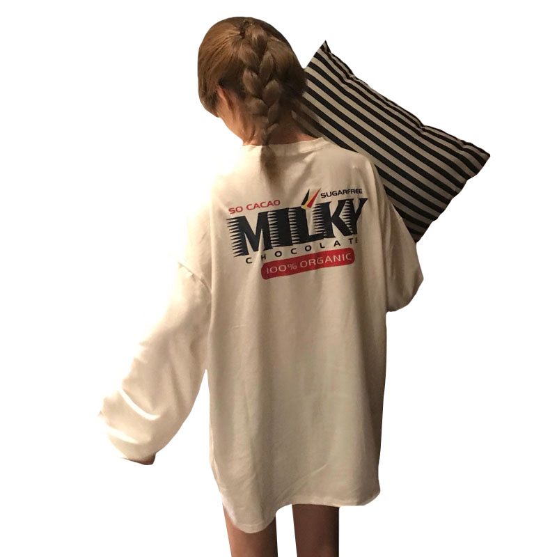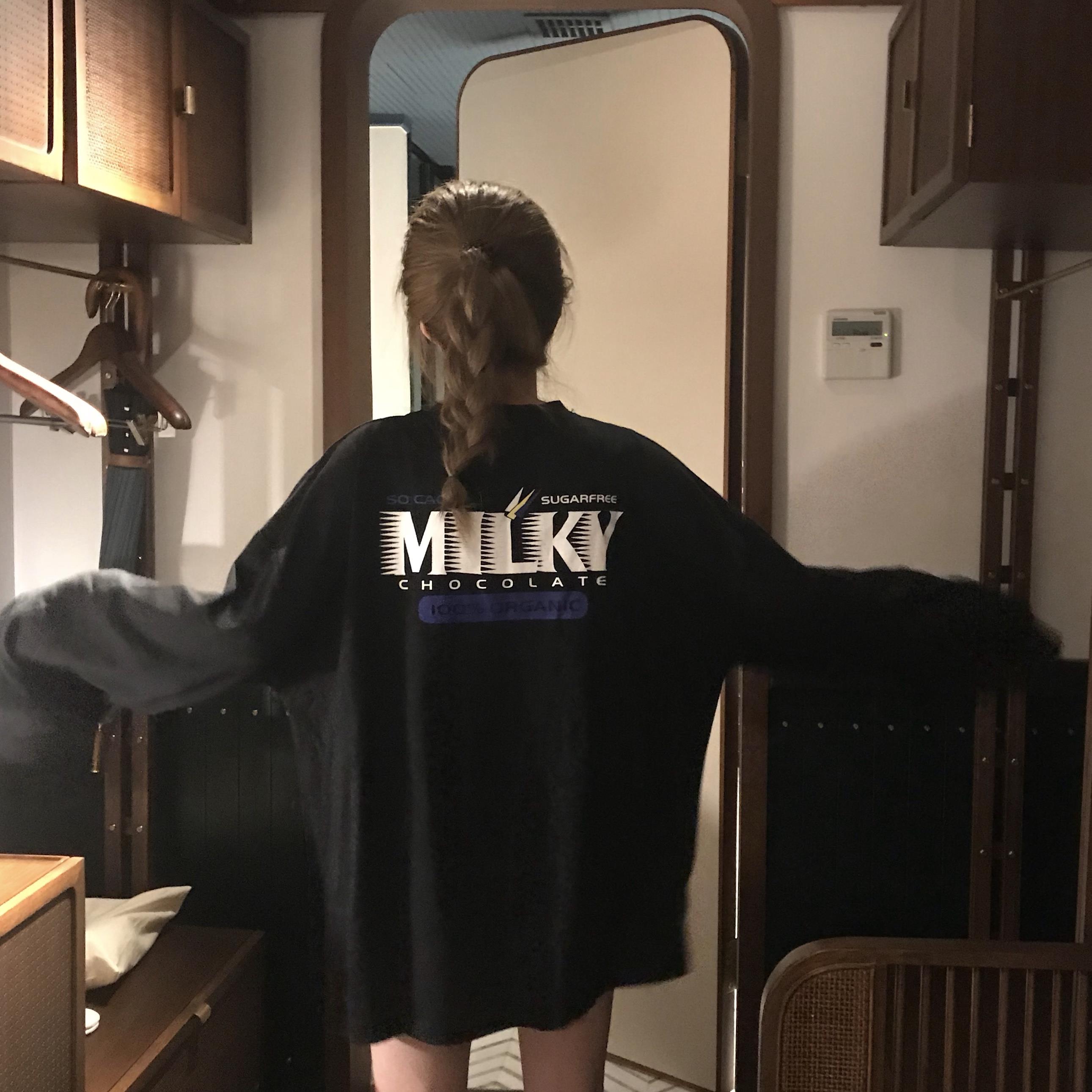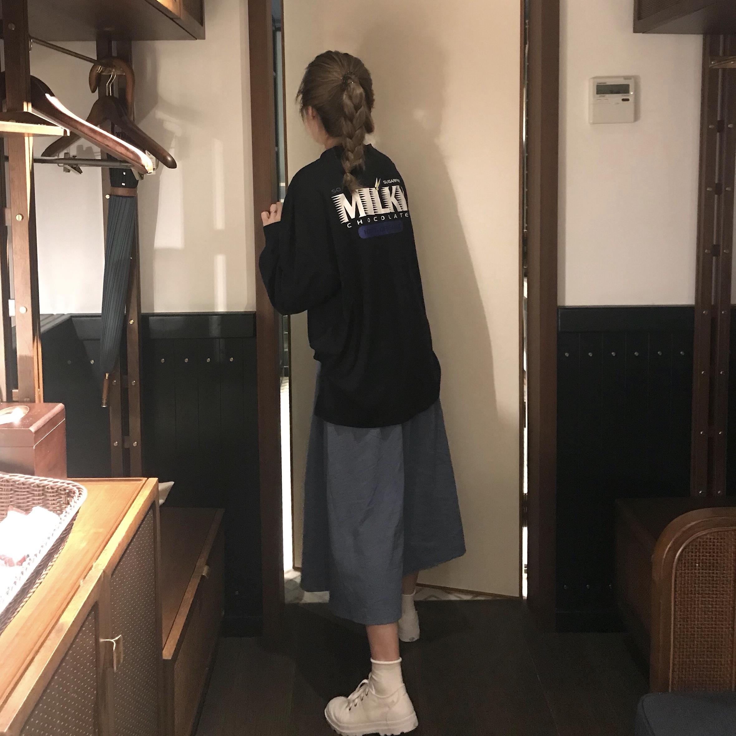 / 秋季女裝韓版中長款原宿風寬松百搭長袖T恤開叉顯瘦上衣體恤學生