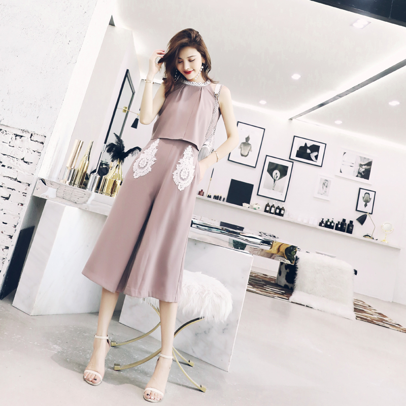 / 歐洲站名媛氣質港味連體褲女夏高腰顯瘦垂感闊腿褲2018新款七分褲
