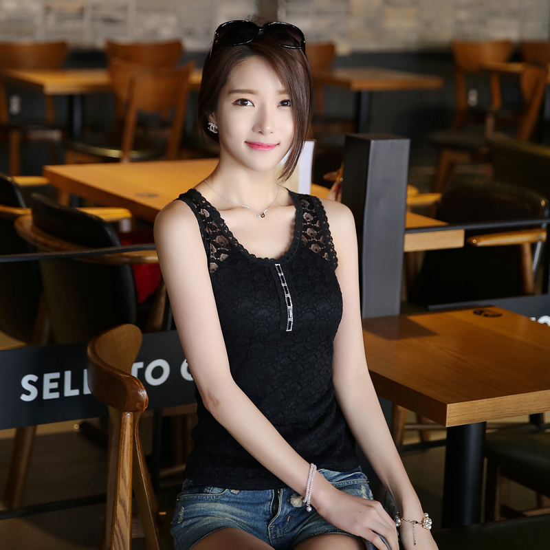 / 新款蕾絲打底背心女短款春夏裝新款韓版顯瘦大碼修身鑲鉆吊帶潮