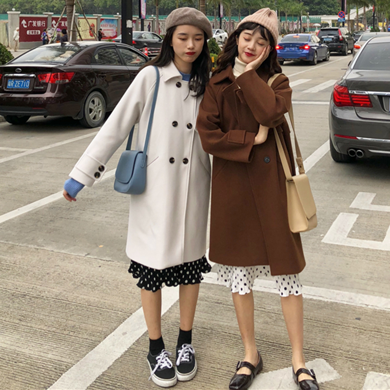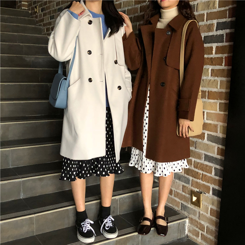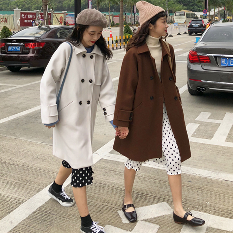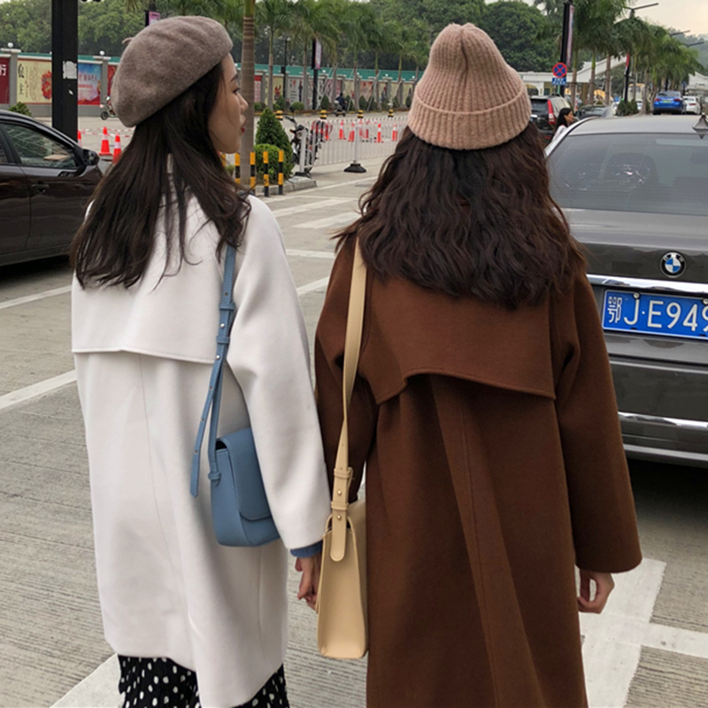 2018流行毛呢外套女秋冬裝新款赫本大衣中長款風衣休閑開衫上衣潮