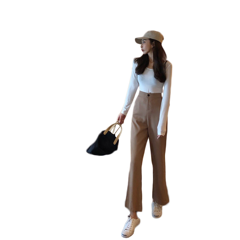 時尚秋裝女2018新款薄款復古高腰百搭微喇休閑西褲修身顯瘦褲子潮