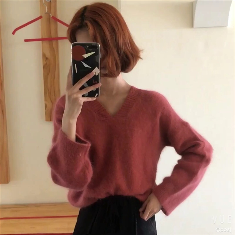 / 秋冬韓版寬松純色甜美小清新網紅馬海毛套頭針織衫毛衣上衣外套女