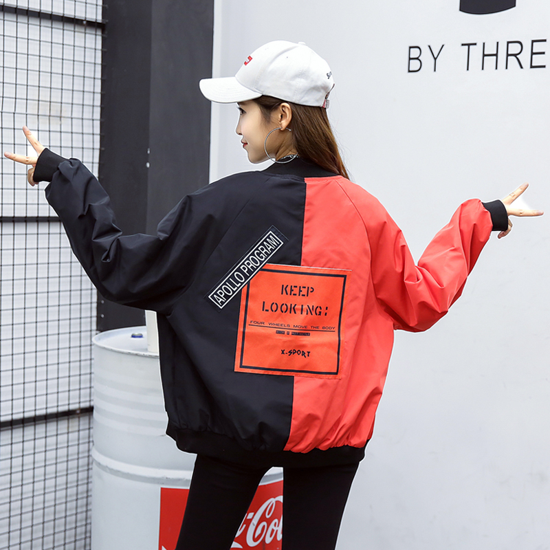 / 秋季夾克外套女春秋韓版學生貼布撞色bf原宿寬松棒球服織帶原宿風